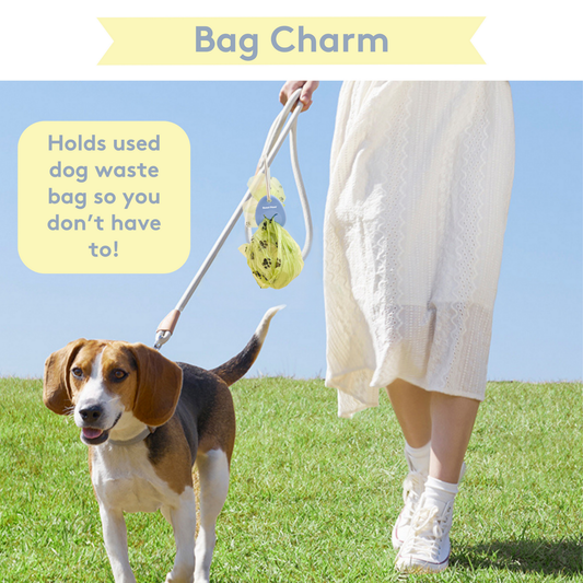 I'm delighted with this Sweet Paws Bag Charm! I wish I had known about it sooner- it's great! I love that it frees up my hands and doesn't accentuate what I'm carrying. The leash I put it on is somewhat wide, so I attached the carabiner to the poop bag holder already on the leash, and that was easier to attach. Such a clever idea- one of those things you wish you invented yourself! Highly recommended!