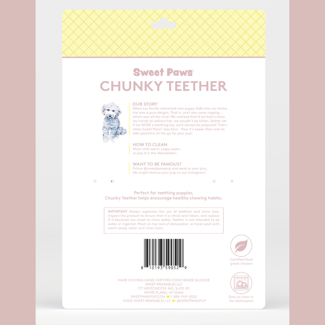 Take playtime on the go with our new Chunky Teether! Wear this teether on your wrist and always have a chew toy handy to redirect a nippy puppy. Simply remove it from the wrist when the puppy is ready to play!
