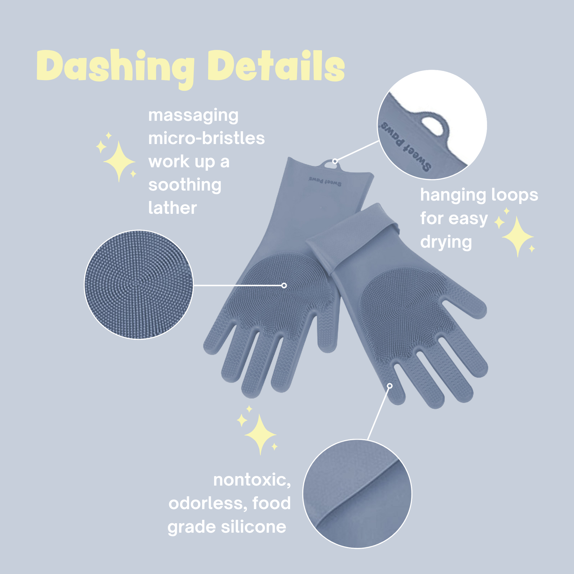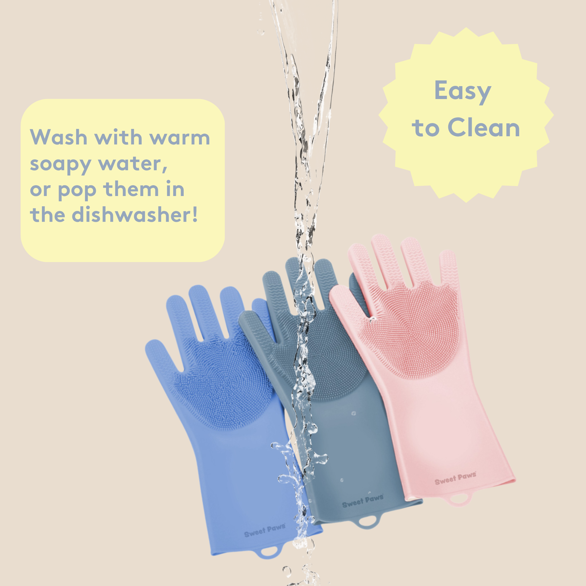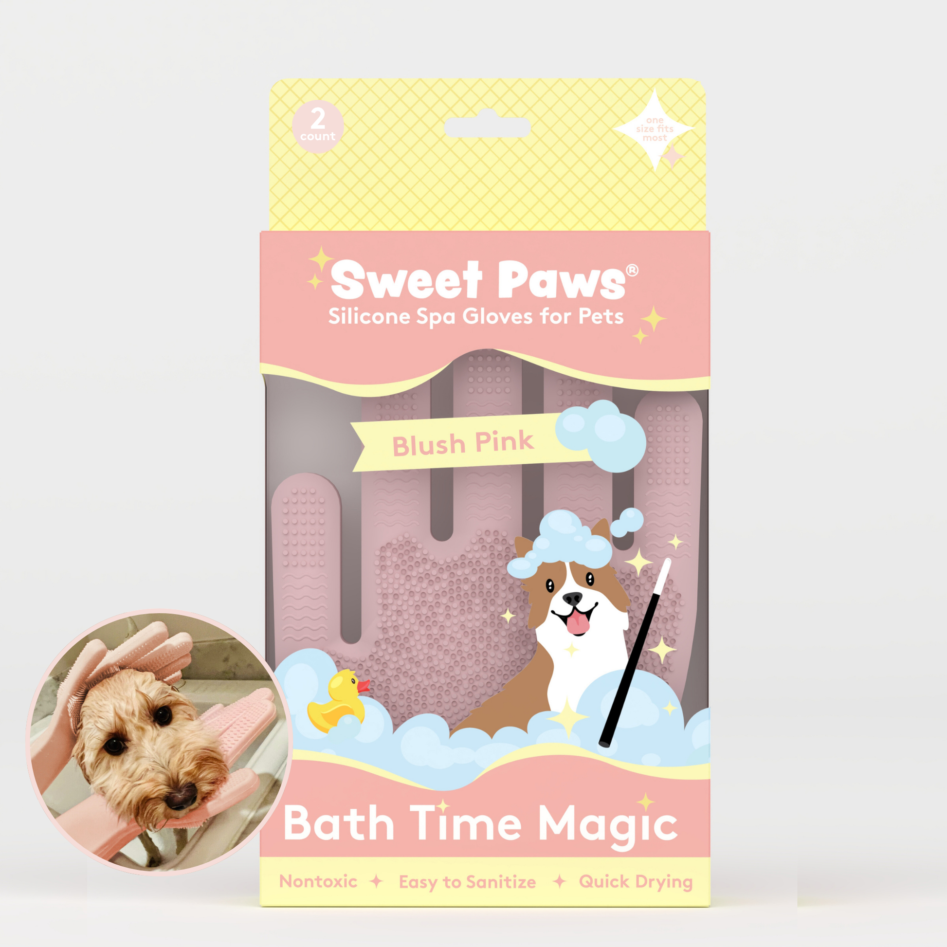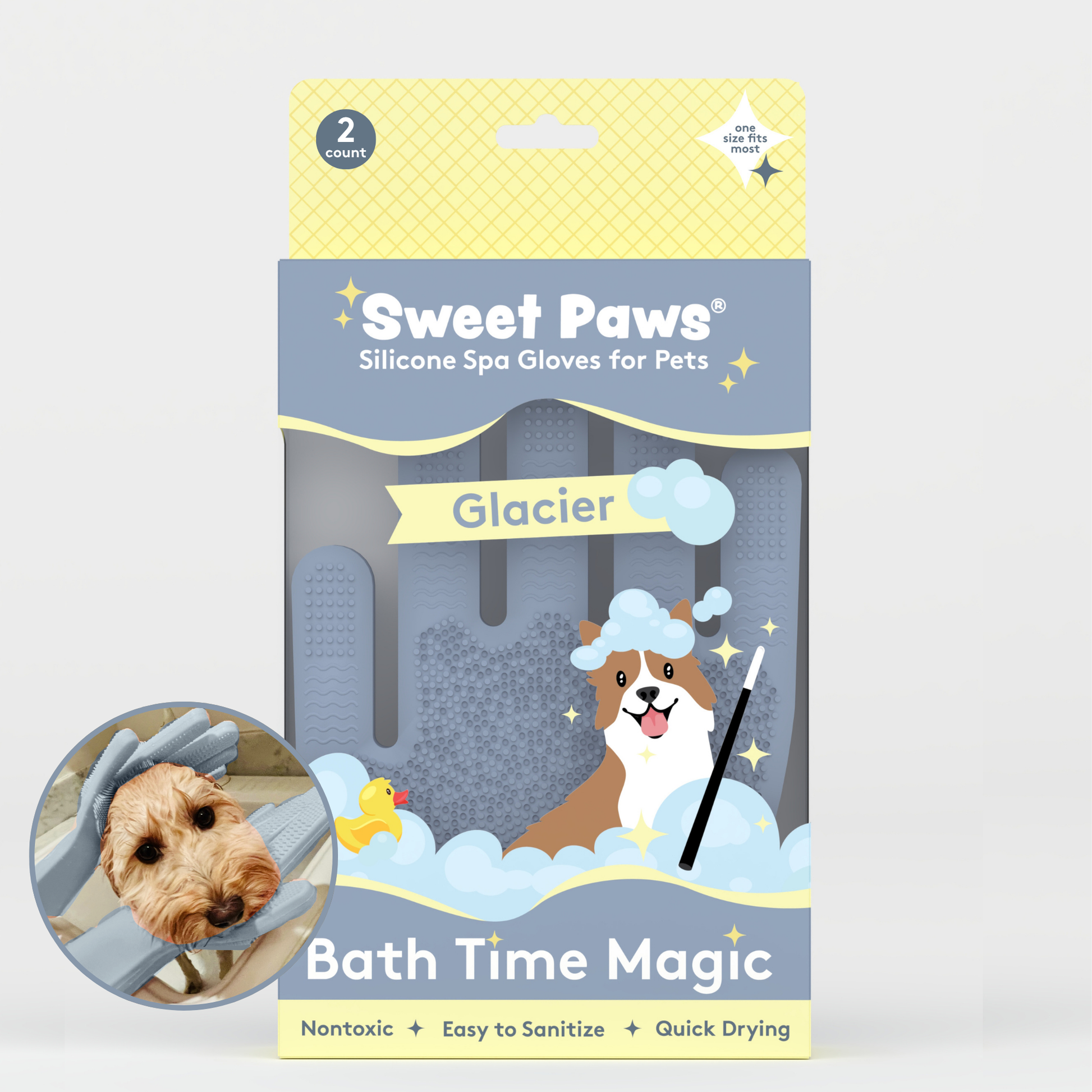 Pamper your pet with an s-paw day with Sweet Paws Silicone Spa Dog & Cat Grooming Gloves! They are designed to protect your hands while you massage your furry friend or scrub away dirt and grime during bath time. Not only do they protect your hands, but they also help leave your pet's coat fresh and clean!  Double-sided to fit righties and lefties alike.