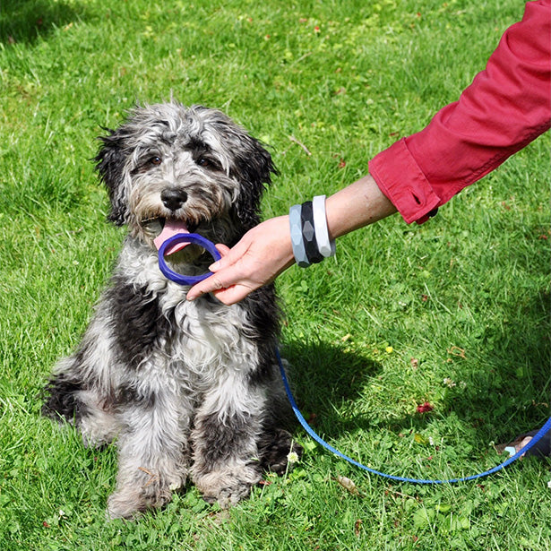 Wear it as a bracelet and always have a teething toy ready when your puppy comes nipping!